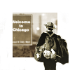 Description: benton fraser carrying his pack as he walks into chicago