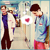 Description: j.d. looking down at his pink scrub pants and hearting them while dr. cox walks by