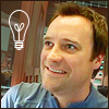 Description: david hewlett (dressed as rodney mckay) with an icon of a lightbulb by his head