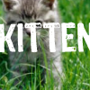 Description: grey kitten in a green field, with huge text "KITTEN" stamped over it
